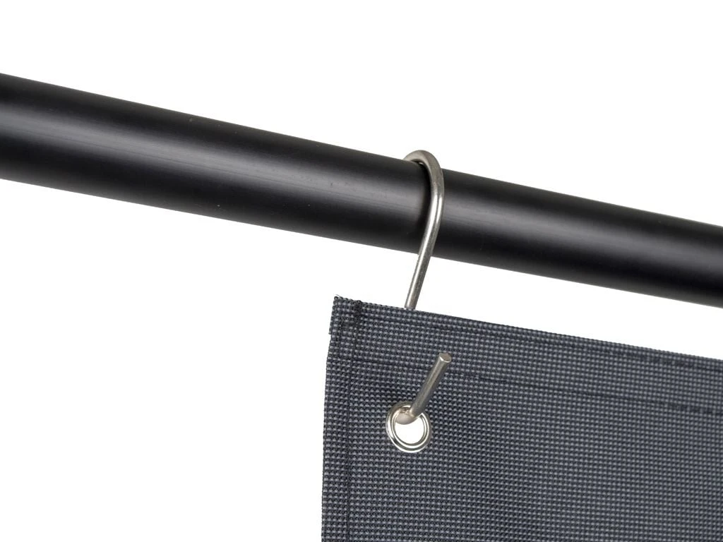 Deze tentshort kun je op drie verschillende manieren ophangen. Bevestig hem met klittenband om een tentstok, maak gebruik van de pees of hang hem op met S-haken aan de ophang ogen.