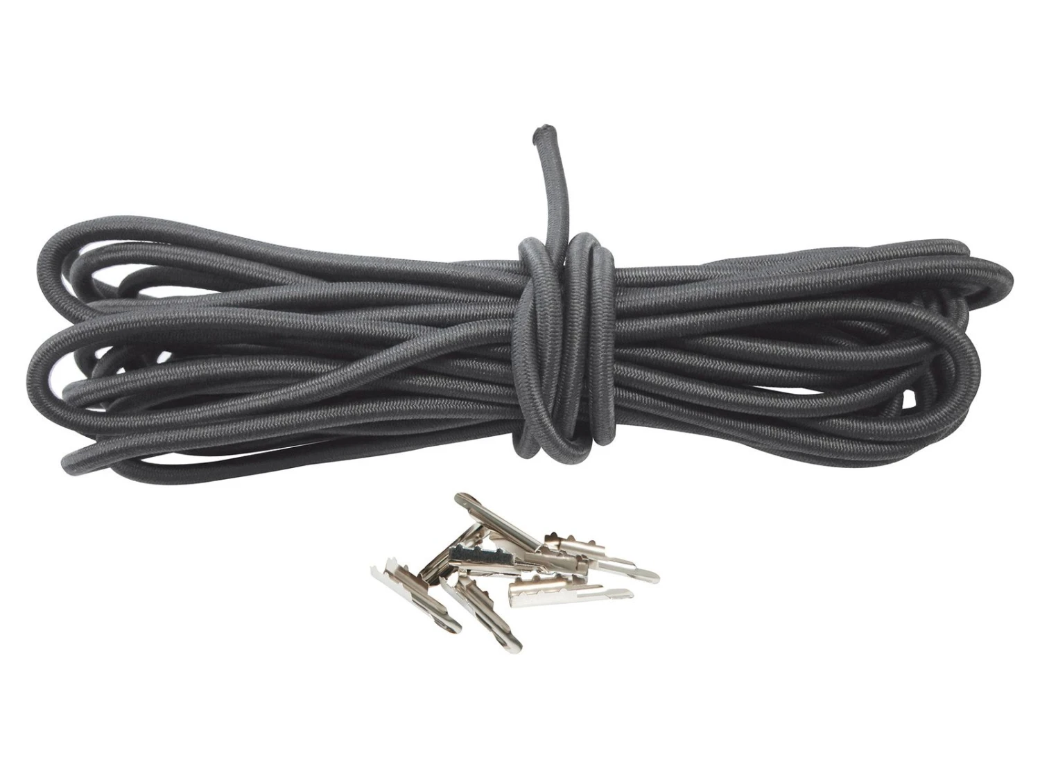 De Bo-Camp elastiek vervangingset is geschikt voor het vervangen van elastieken van bedden en relaxstoelen. Het elastiek heeft een lengte van 9 meter (en een diameter van 5,2 mm), maar is eenvoudig op maat te maken. Met de 10 meegeleverde metalen klemhulsjes zet je het elastiek vast aan de stoel.