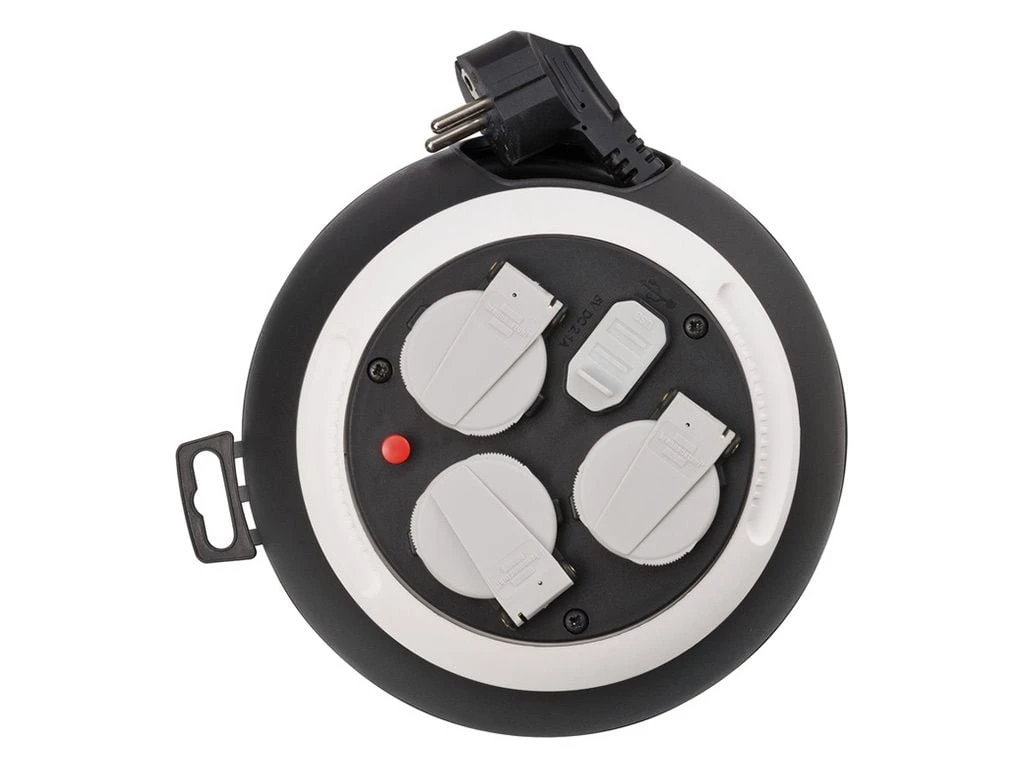 Een kabelhaspel is altijd handig om in huis te hebben en om mee te nemen naar de camping. Deze Comfort-Line kabelhaspel is voorzien van 3 meter verlengsnoer zodat je altijd bij het stopcontact kan. De kabelhaspel heeft 3 geaarde stopcontacten met een zelfsluitende klapdeksel en 2 USB-laadcontactdozen die stof- en vuilafstotend zijn. De USB-laadaansluitingen hebben een laadstroom van maximaal 2100 mA, voor snel laadproces.