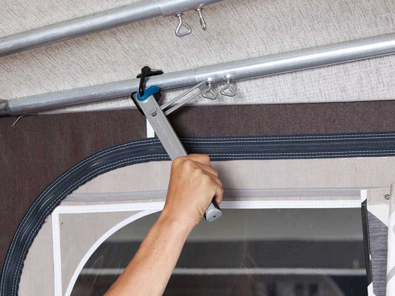 De Isabella Hercules Triple is een uniek stuk gereedschap voor het afspannen van je voortent, zodat het tentdoek optimaal gespannen is. Zo wordt flapperen voorkomen en krijgt de tent meer stabiliteit. Dit komt de levensduur van de voortent ten goede, omdat alle onderdelen gelijkmatig worden belast.