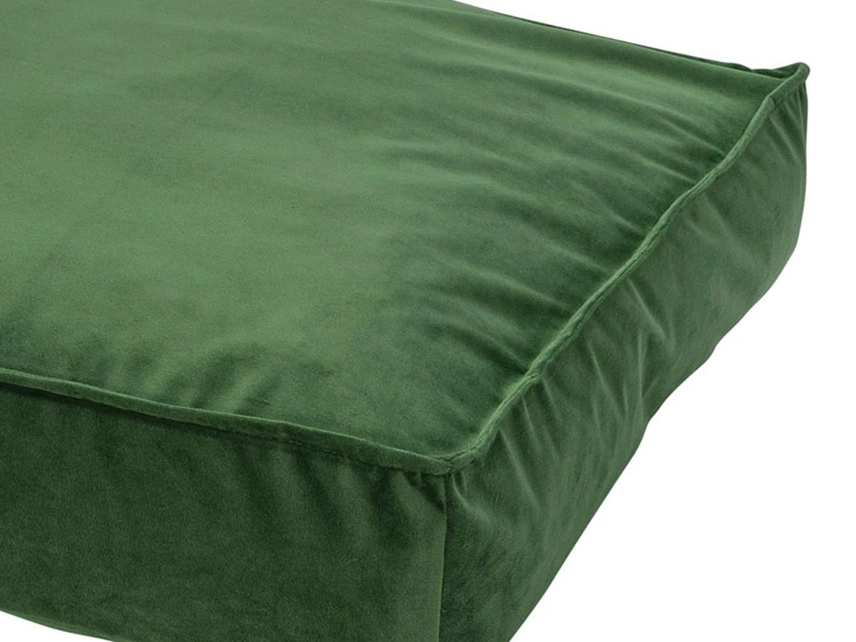 Het Medium Lounge Velours green hondenkussen heeft een afmeting van 100 x 70 x 15 cm. De afritsbare hoes is gemaakt van 100% zeer zachte polyester. De hoes is vochtafstotend en helpt de vulling vochtvrij te houden. Losse haren zijn gemakkelijk van het kussen af te vegen en voor een grondige reiniging kan de hoes gewassen worden op 30 graden.