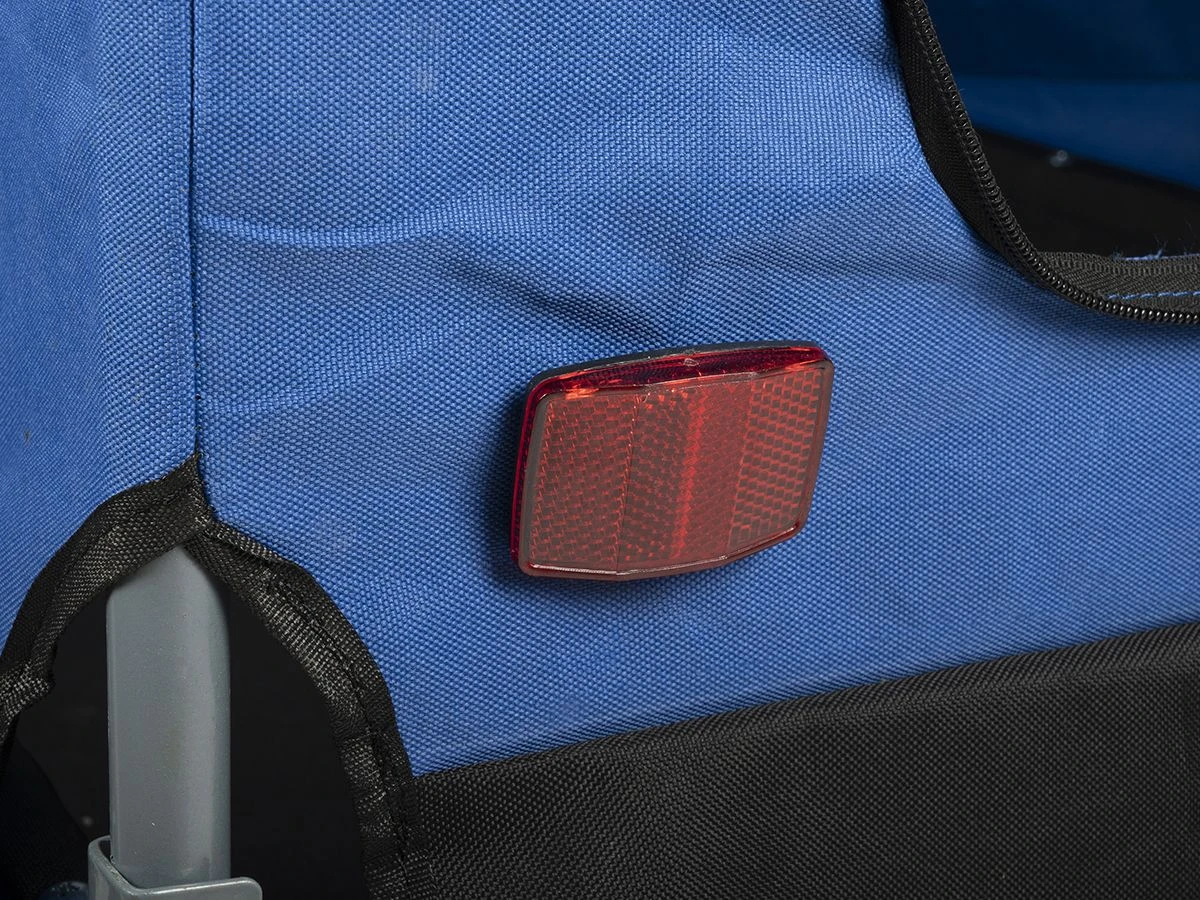 De fietsaanhanger is ook nog eens voorzien van veiligheidsreflectoren. Ideaal en veilig om je huisdier in mee te nemen dus!
