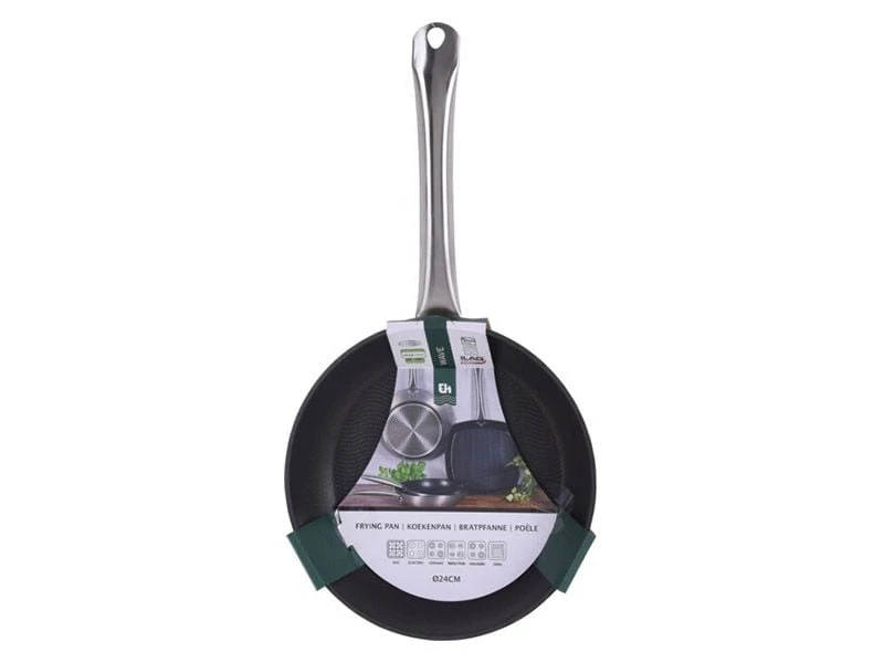 Een koekenpan met een diameter van 24 cm is een ideaal formaat om bijvoorbeeld een lekker eitje te bakken of het bakken van aardappels en vlees. De pan heeft een bodemdikte van ongeveer 3 mm en is voorzien van een anti aanbak coating zodat je gerechten niet aankoeken.