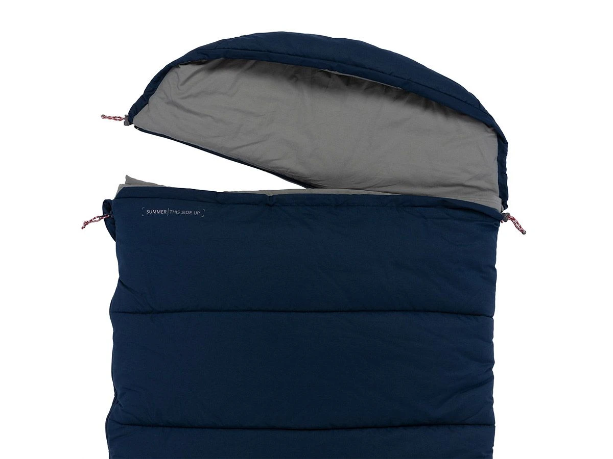 In de warmere nachten kun je onder de zomerkant van de Passaat slapen. Op de linkerbovenhoek van de slaapzak is duidelijk aangegeven om welke kant het gaat. De zomer kant van deze slaapzak heeft vanzelfsprekend wat minder isolatie dan de herfst kant.