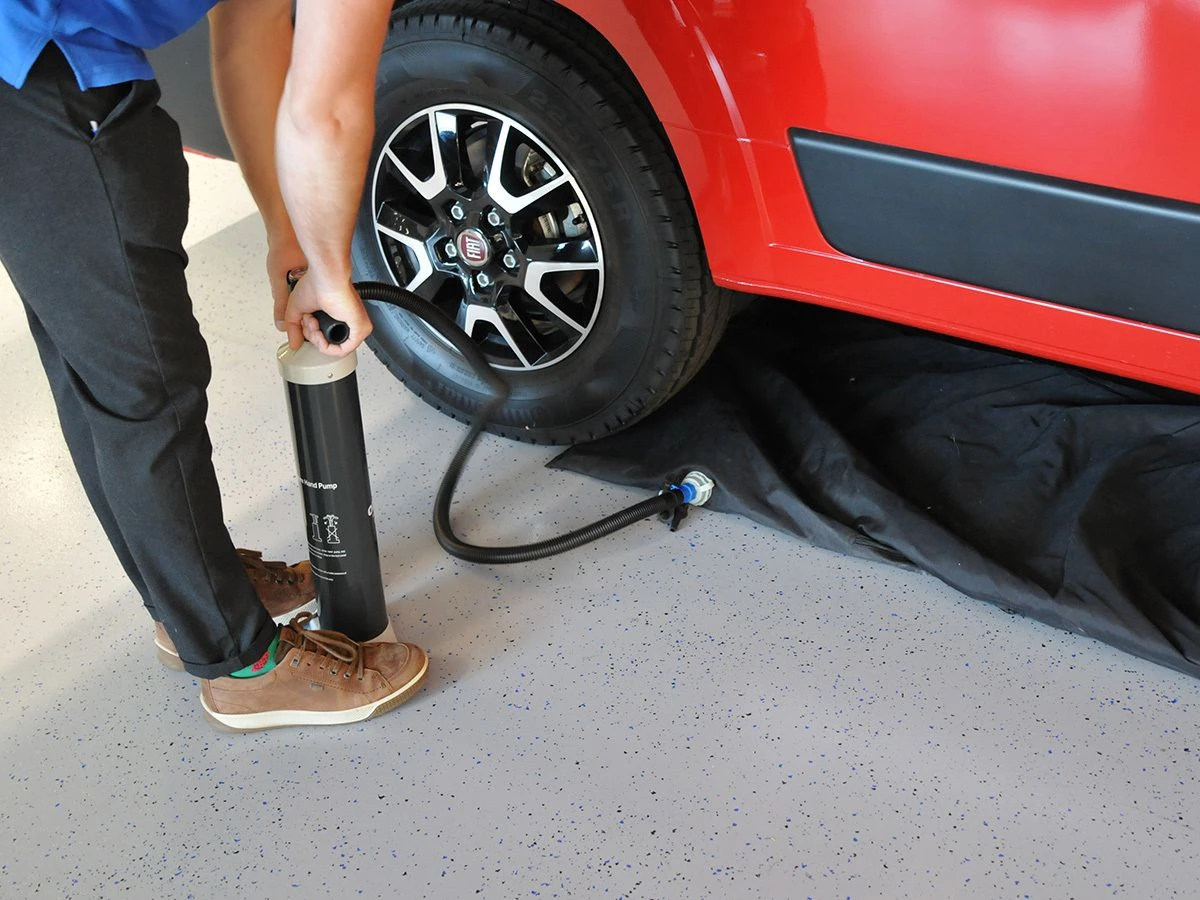Met deze opblaasbare tochtstrook met een lengte van 450 cm kun je de onderzijde van je camper tochtdicht afsluiten zodat er geen koude wind van onder de camper in de voortent komt. Omdat de meeste campers géén rail aan de onderzijde hebben om een tochtstrook in te kunnen schuiven is een opblaasbare tochtstrook dé uitkomst! Leg de tochtstrook onder de camper en pomp hem op. Het stevige polyester kussen vult vervolgens de ruimte onder het voertuig op.