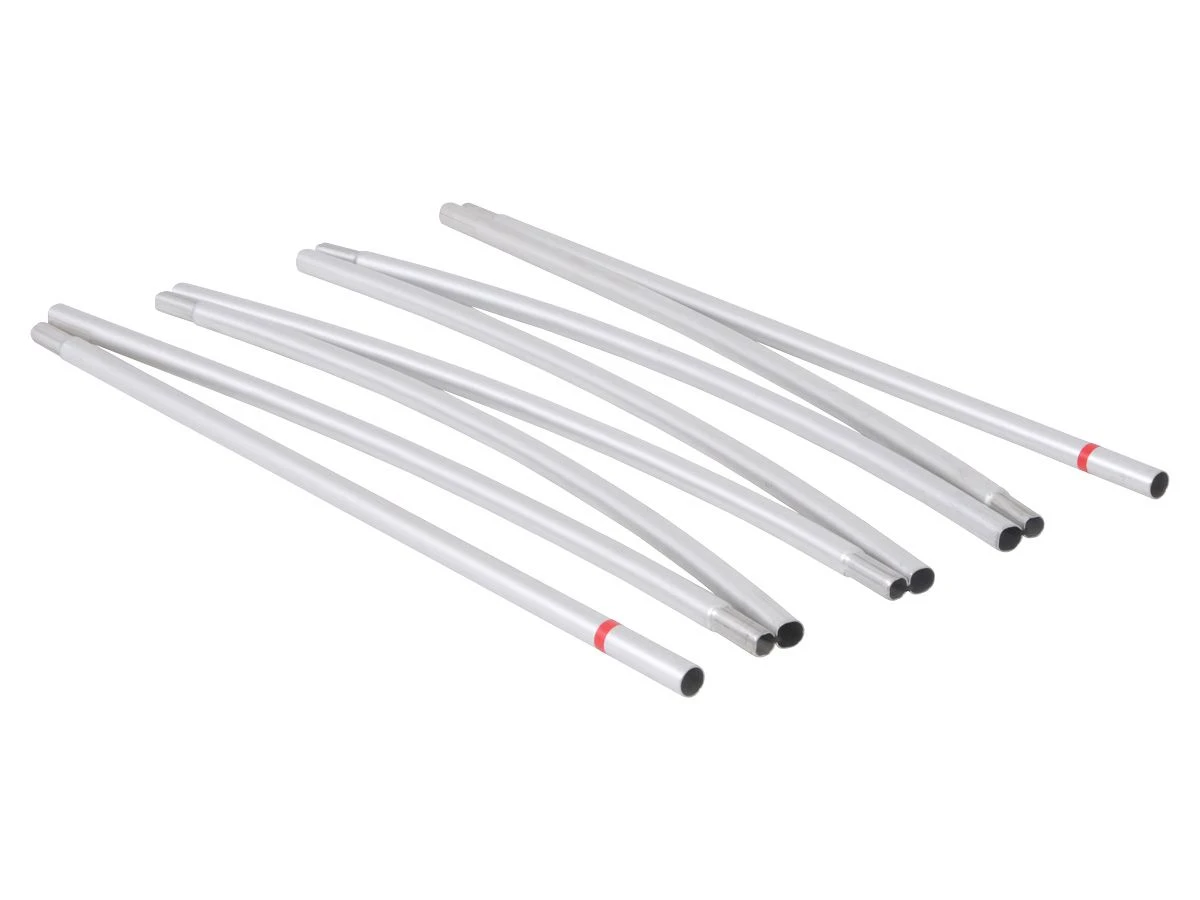 Dit is de aluminium boogstok met de rode markering voor de Obelink Manitoba 6 tunneltent. Deze stok staat met de letter A aangegeven in de handleiding.