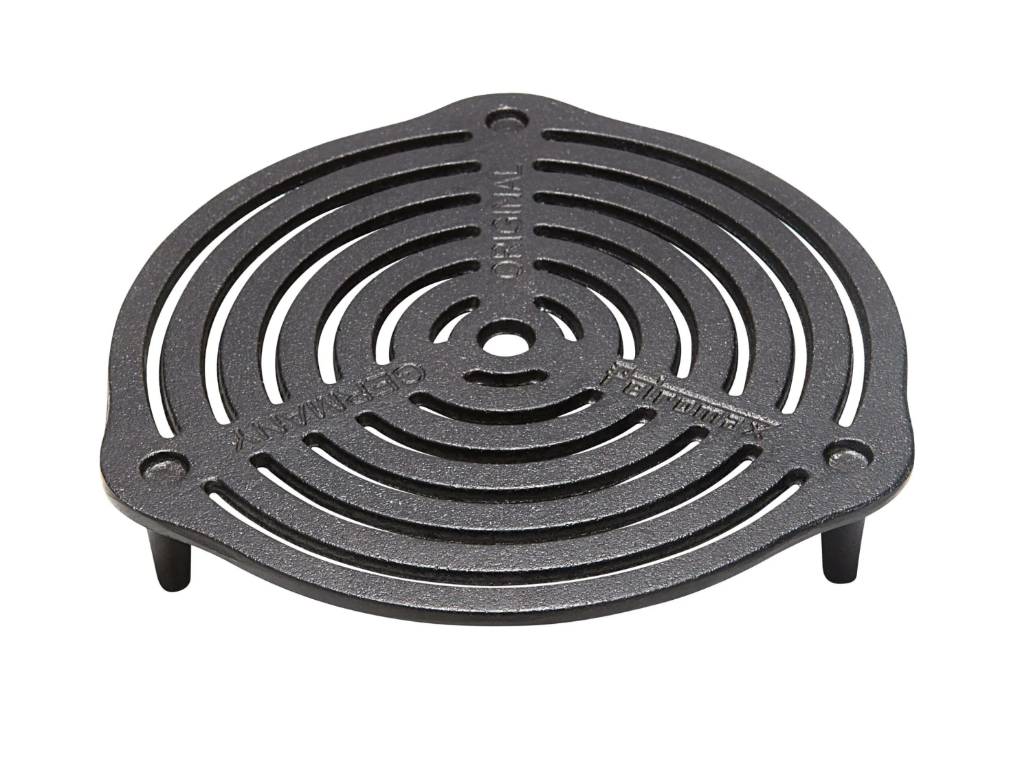Het is een onderzetter en grillrooster in 1. Door de 3 pootjes staat het rooster extra stevig in de pan. De pootjes zorgen dat het eten niet direct op de bodem ligt en daardoor is de kans op aanbranden minder.