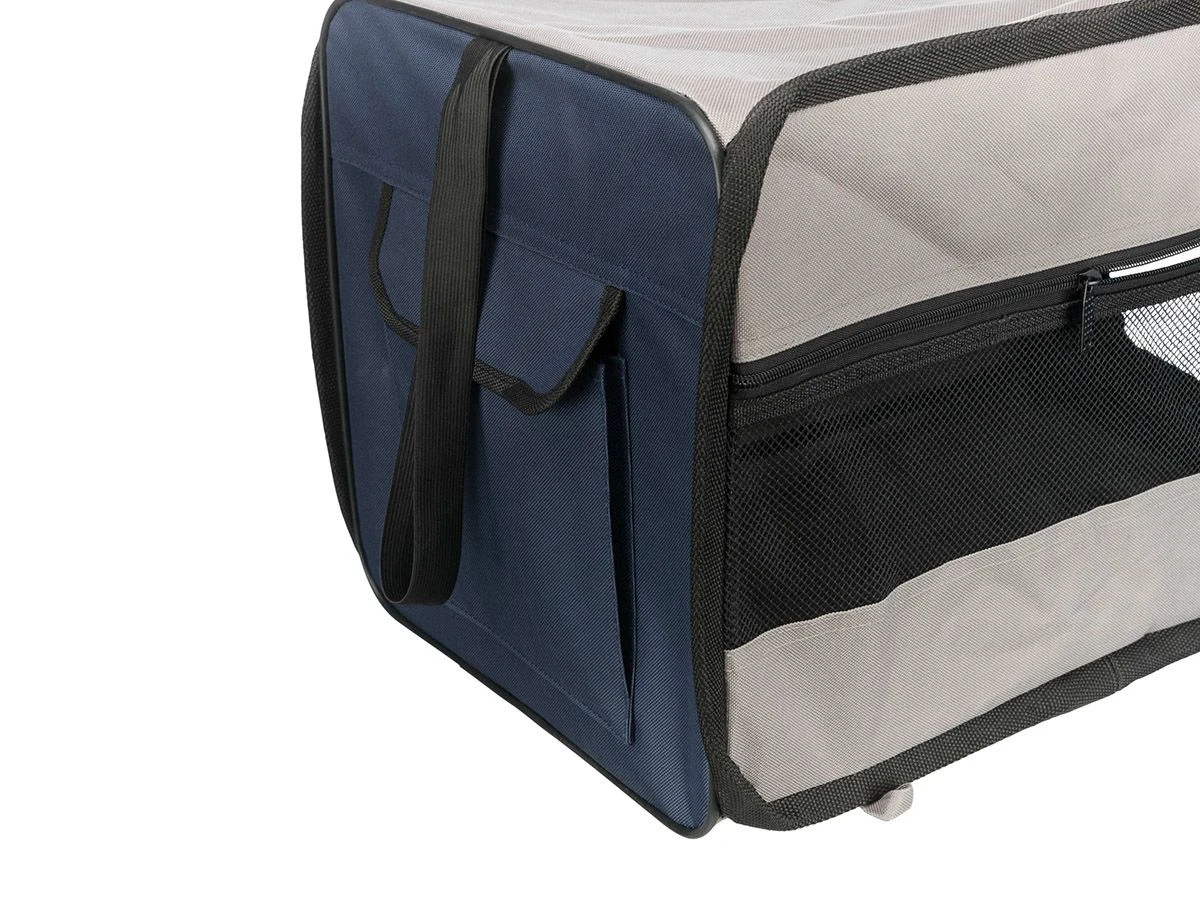 De Trixie Twister is voorzien van lusjes aan de buitenkant waarmee je de bench eenvoudig met haringen aan de grond kunt bevestigen. Deze S/M variant heeft een afmeting van 52 x 50 x 76 cm en is gemaakt van polyester.